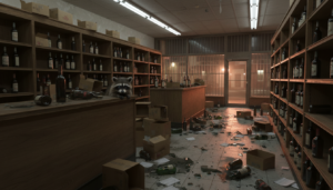 사건의 발단은 이렇습니다. 평소와 다름없이 아침에 출근한 직원은 매장 내부를 보고 경악을 금치 못했습니다. 수많은 술병들이 바닥에 나뒹굴고 있었고, 매장 안은 마치 폭풍이 휩쓸고 지나간 듯 엉망진창이었죠. 처음에는 도둑이 들어와서 난장판을 만든 줄 알았지만, 진짜 놀라운 광경은 화장실에서 펼쳐졌습니다. 그곳에는 회색 털을 가진 라쿤 한 마리가 술에 취해 인사불성인 상태로 대자로 누워 있었던 겁니다!